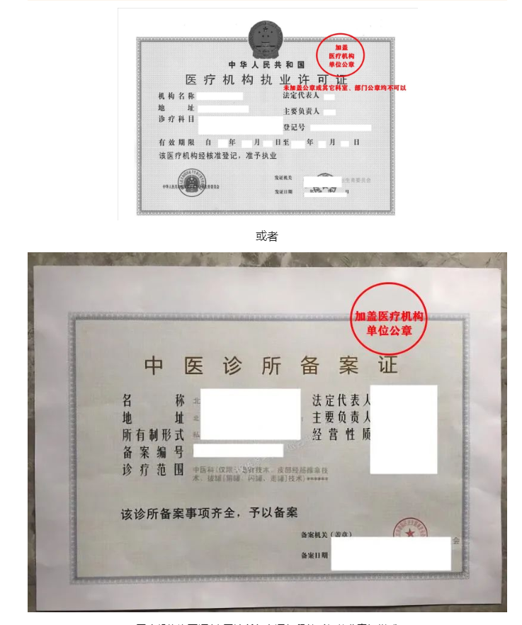 醫(yī)療機(jī)構(gòu)許可證/中醫(yī)診所備案證復(fù)印件(加蓋公章)樣式
