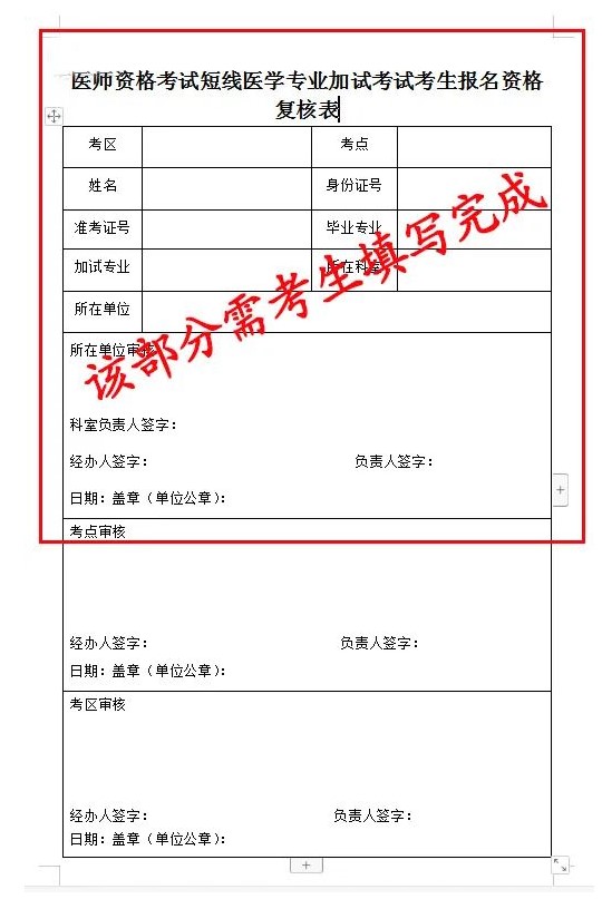 12、報(bào)考執(zhí)業(yè)醫(yī)師短線加試的考生還需提交《醫(yī)師資格考試短線醫(yī)學(xué)專業(yè)加試考試考生報(bào)名資格復(fù)核表》(下載方式見文末);