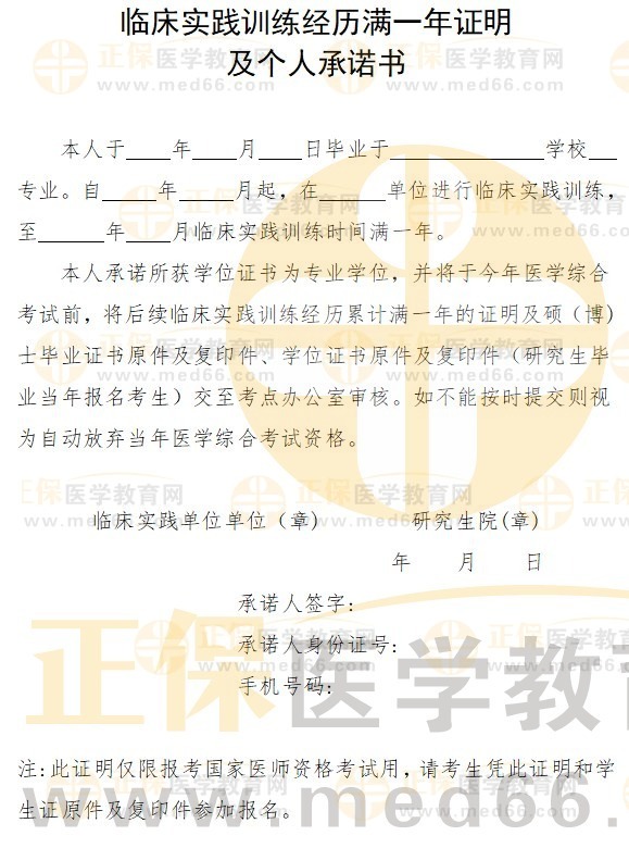 2024年《臨床實(shí)踐訓(xùn)練經(jīng)歷滿一年證明及個(gè)人承諾書》(研究生)下載