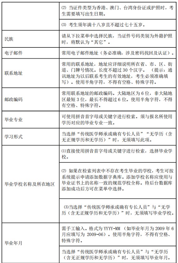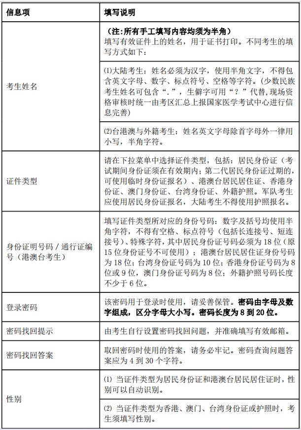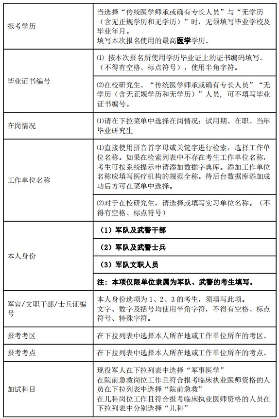 國家醫(yī)學考試網(wǎng)官方2024年醫(yī)師資格考試報名表填寫說明對照