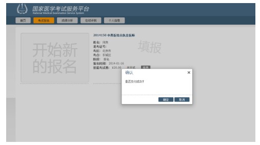 繳費(fèi)成功后回到系統(tǒng)中,系統(tǒng)會(huì)詢問是否支付成功,若成功點(diǎn)擊“確定”按鈕,之后在報(bào)考項(xiàng)目中繳費(fèi)狀態(tài)顯示“已繳費(fèi)”。由于銀行接口通訊存在延時(shí)的情況,若當(dāng)時(shí)未能顯示“已繳費(fèi)”,請(qǐng)注意等待幾分鐘之后刷新頁面再進(jìn)行觀察。