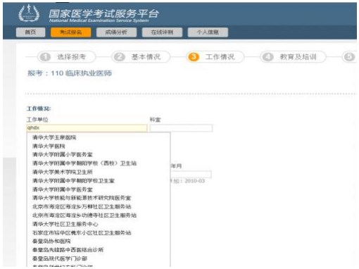答:在系統(tǒng)中以上兩者的填寫方式相同。如填寫工作單位,在網上報名系統(tǒng)中“工作單位”可以通過輸入拼音首字母或直接填寫工作單位名稱的方式檢索,在查詢到的下拉框中選擇您的工作單位即可。當鼠標從工作單位項移開后,如果工作單位文本框顯示黃色表示您輸入的工作單位沒有收錄在網站工作5單位字典中(若出現(xiàn)此種情況,請您仔細核對輸入的工作單位是否有誤,若確認無誤,則需申請?zhí)砑訑?shù)據(jù),請按系統(tǒng)提示登陸相關鏈接進行相應的操作。具體操作步驟見下個問答);顯示紅色表示您未輸入工作單位;顯示灰色表示您選擇的工作單位存在系統(tǒng)中并可以使用。如下圖: