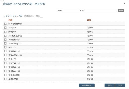 問:在填寫“教育及培訓”信息時,發(fā)現(xiàn)系統(tǒng)中未能找到對應的畢業(yè)院校,該如何操作?