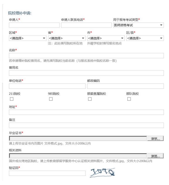 答:在畢業(yè)學校下拉菜單中選擇院校名稱。如菜單中沒有相應的院校名稱,則需申請?zhí)砑訑?shù)據(jù),請按系統(tǒng)提示登陸相關鏈接進行相應的操作,完成后聯(lián)系考區(qū),待后臺數(shù)據(jù)庫添加成功后在菜單中選擇。