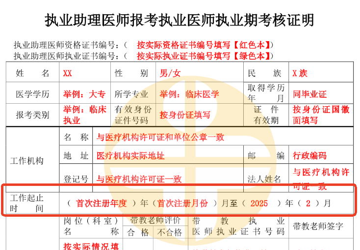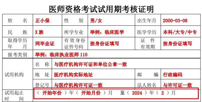 2025年《醫(yī)師資格考試試用期考核證明》起止日期如何填寫?