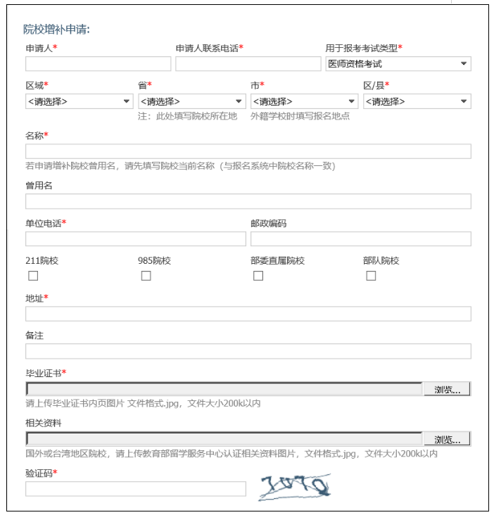 答:在畢業(yè)學(xué)校下拉菜單中選擇院校名稱。如菜單中沒有相應(yīng)的院校名稱,則需申請(qǐng)?zhí)砑訑?shù)據(jù),請(qǐng)按系統(tǒng)提示登陸相關(guān)鏈接進(jìn)行相應(yīng)的操作,完成后聯(lián)系考區(qū),待后臺(tái)數(shù)據(jù)庫(kù)添加成功后在菜單中選擇。