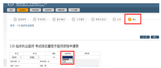 答:報(bào)考臨床執(zhí)業(yè)醫(yī)師且在院前急救或兒科崗位的考生可以申請(qǐng)參加短線醫(yī)學(xué)專業(yè)加試,在考試報(bào)名第七步確認(rèn)時(shí),在表中選院前急救或兒科加試。參加短線醫(yī)學(xué)專業(yè)加試的考生,如通過加試獲得醫(yī)師資格,限定在加試的專業(yè)或崗位范圍內(nèi)執(zhí)業(yè),如需變更執(zhí)業(yè)范圍需重新參加醫(yī)師資格考試獲取醫(yī)師資格。如下圖: