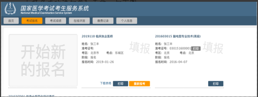 答:如需修改個(gè)人報(bào)名信息,須在網(wǎng)上報(bào)名截止日前,再次登陸服務(wù)平臺(tái),進(jìn)入“考試報(bào)名”欄目,在需要修改的報(bào)名下方點(diǎn)擊“重新報(bào)考”,進(jìn)行信息修改,修改完成后務(wù)必再重新提交,如未提交,視為報(bào)名不成功,報(bào)名成功后需重新打印《醫(yī)師資格考試網(wǎng)上報(bào)名成功通知單》,原《醫(yī)師資格考試網(wǎng)上報(bào)名成功通知單》無效。如下圖: