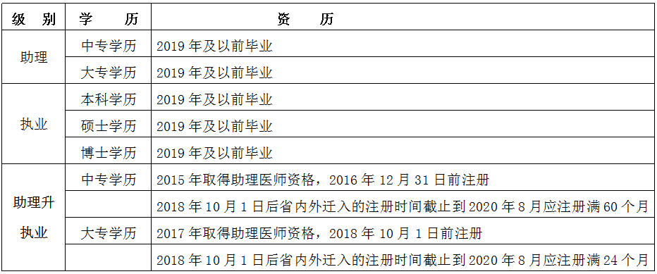 河南省2020年度國家醫(yī)師資格考試審核年限一覽表