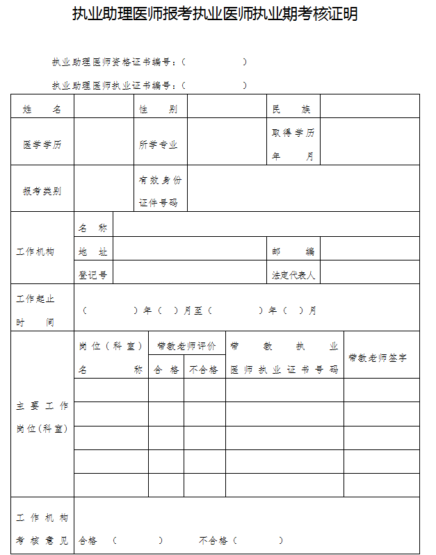 2020執(zhí)業(yè)助理醫(yī)師報考執(zhí)業(yè)醫(yī)師執(zhí)業(yè)期考核證明表(word)