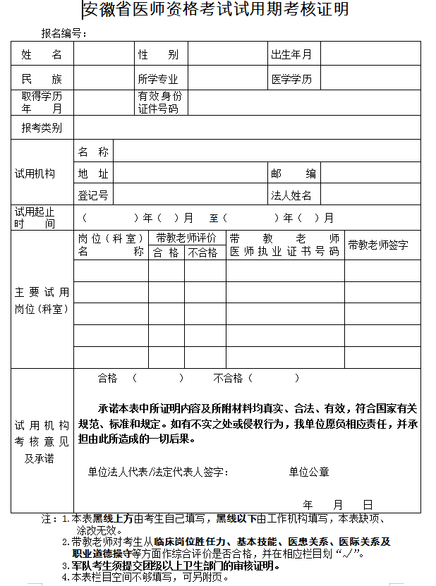 (新版執(zhí)業(yè)醫(yī)師)安徽省醫(yī)師資格考試試用期考核證明!