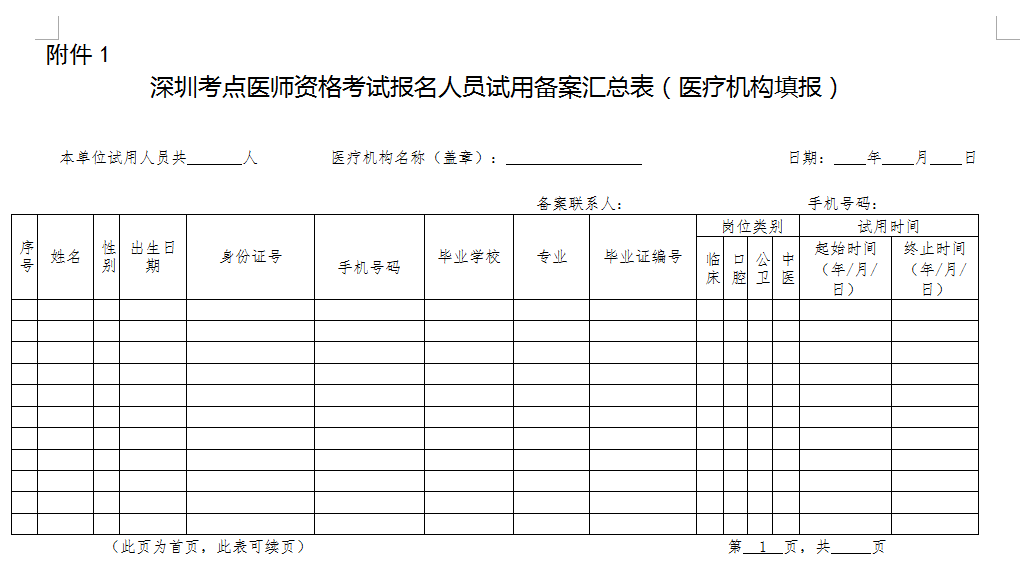 下載:深圳考點(diǎn)醫(yī)師資格考試報(bào)名人員試用備案匯總表(醫(yī)療機(jī)構(gòu)填報(bào))