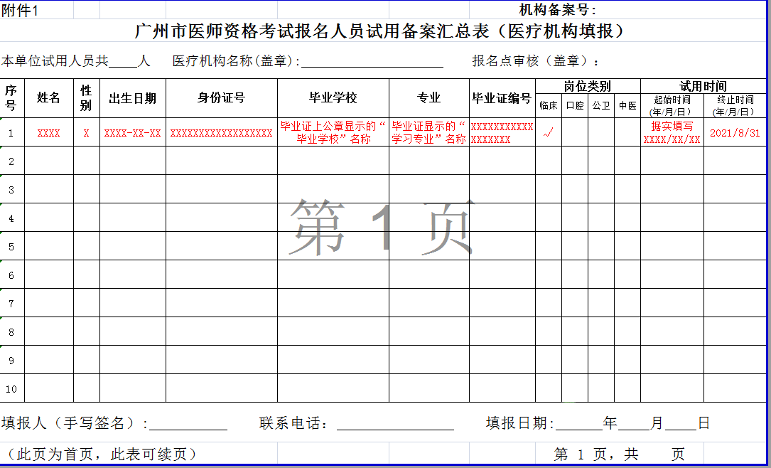 廣州市醫(yī)師資格考試報名人員試用備案匯總表(醫(yī)療機構(gòu)填報)