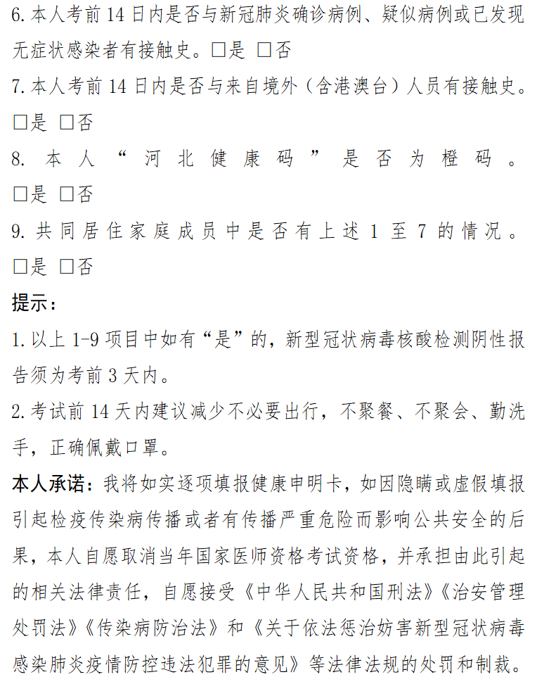 2021年全國(guó)醫(yī)師資格考試實(shí)踐技能考試考生健康申明卡及安全考試承諾書