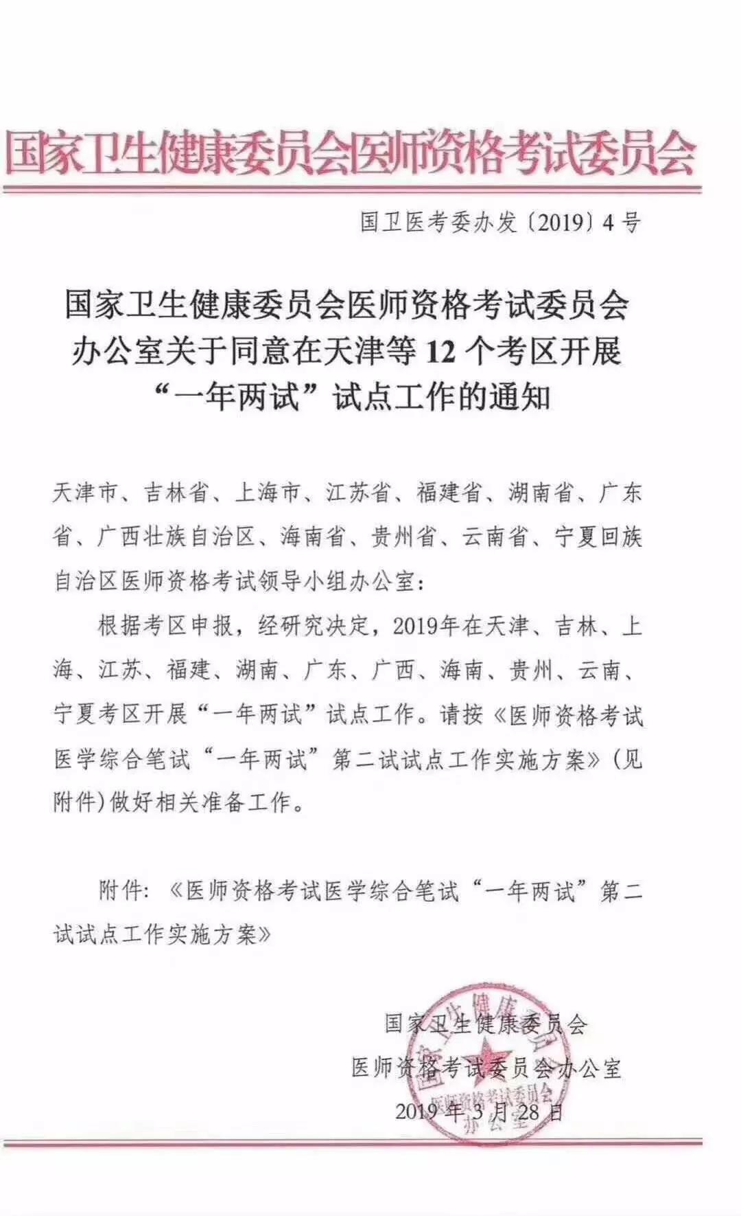 2019執(zhí)業(yè)(助理)醫(yī)師考試“一年兩試”試點地區(qū)匯總