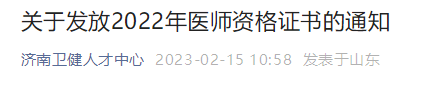山東棗莊考點關(guān)于發(fā)放2022年醫(yī)師資格證書的通知