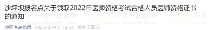 4月10日開始領(lǐng)取!重慶沙坪壩區(qū)關(guān)于領(lǐng)取2022年醫(yī)師資格考試合格人員醫(yī)師資格證書的通知