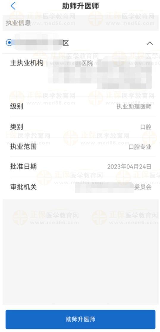 2、在執(zhí)業(yè)信息界面,點擊【助師升醫(yī)師】按鈕。