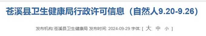 蒼溪縣衛(wèi)生健康局行政許可信息(自然人9.20-9.26)