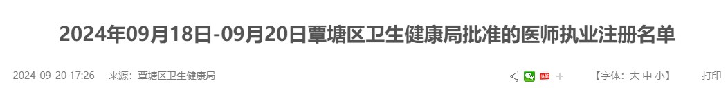 附件:2024年09月18日-09月20日批準的醫(yī)師執(zhí)業(yè)注冊名單(可登錄覃塘區(qū)衛(wèi)生健康局官網(wǎng)查看)