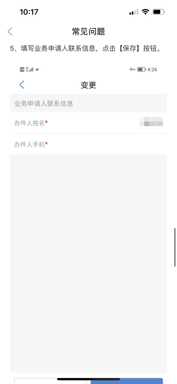 5、填寫業(yè)務申請人聯(lián)系信息,點擊【保存】按鈕。