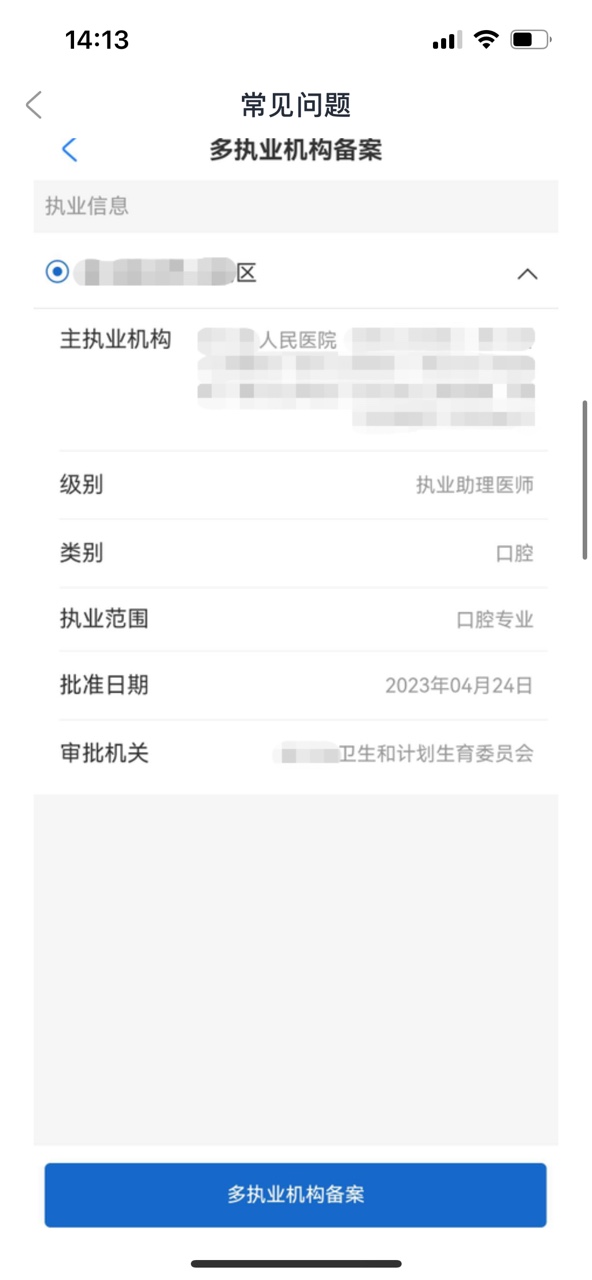 3)如當(dāng)前主執(zhí)業(yè)機(jī)構(gòu)有多個(gè)執(zhí)業(yè)范圍,申請多機(jī)構(gòu)備案時(shí)需在主執(zhí)業(yè)機(jī)構(gòu)的執(zhí)業(yè)范圍中進(jìn)行選擇。