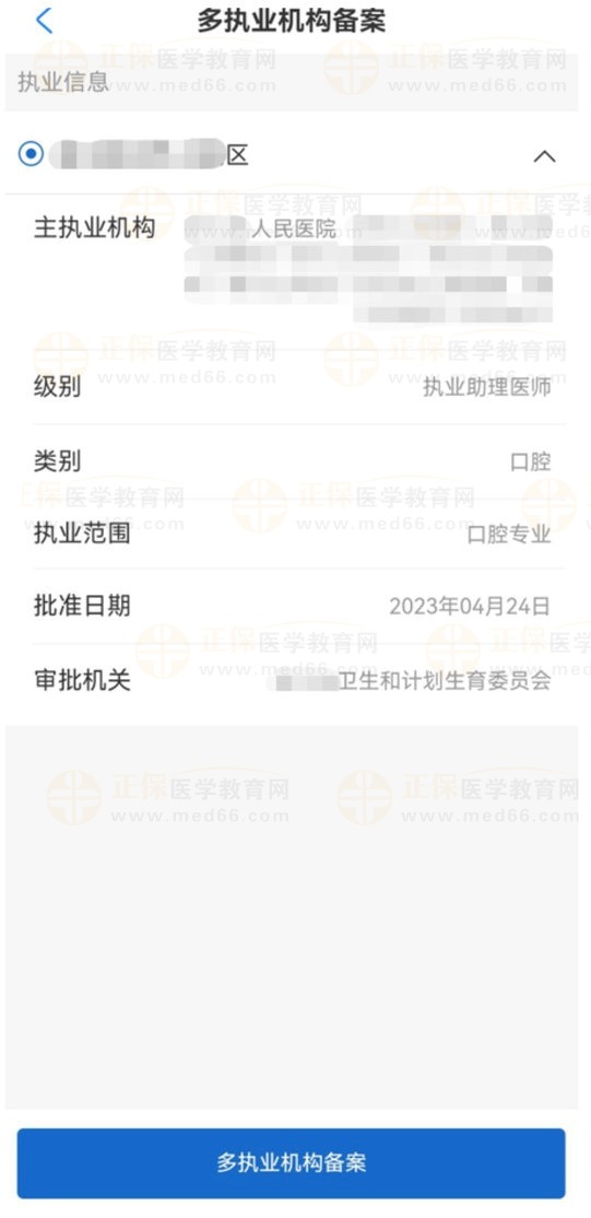 1)助理醫(yī)師執(zhí)業(yè)地點(diǎn)是區(qū)縣級(jí)行政區(qū)劃,如:北京市-海淀區(qū)、河北省-石家莊市-橋西區(qū)、新疆維吾爾自治區(qū)-烏魯木齊-天山區(qū)。助理醫(yī)師在選擇備案的醫(yī)療機(jī)構(gòu)時(shí),需選擇與主執(zhí)業(yè)機(jī)構(gòu)在同一執(zhí)業(yè)地點(diǎn)(同區(qū)縣)下的醫(yī)療機(jī)構(gòu),不能跨執(zhí)業(yè)地點(diǎn)進(jìn)行多執(zhí)業(yè)機(jī)構(gòu)備案,
