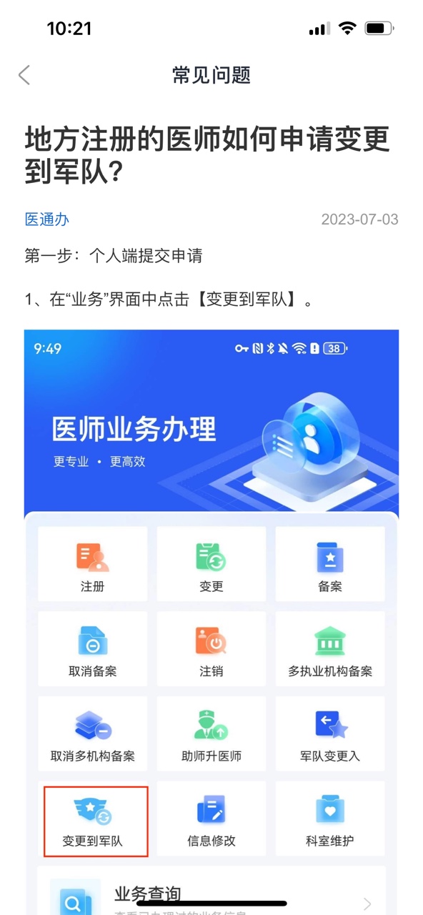 地方注冊的醫(yī)師如何在【醫(yī)通辦】APP上申請變更到軍隊?