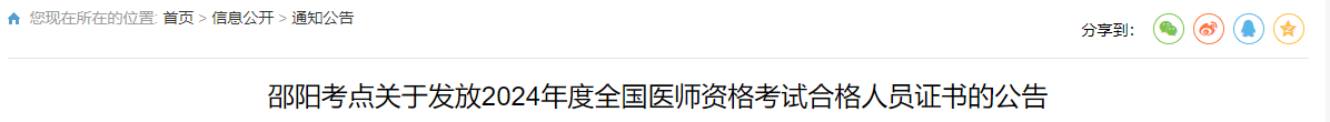 邵陽考點關于發(fā)放2024年度全國醫(yī)師資格考試合格人員證書的公告