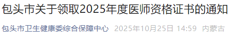 內(nèi)蒙古包頭2025年醫(yī)師資格證書10月27日起發(fā)放,考生速看!