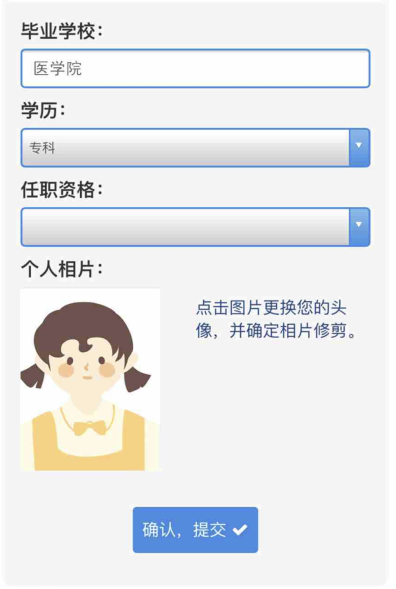 5、按照您個人需求,選擇“畢業(yè)學(xué)校”,“學(xué)歷”,“任職資格”,并可以上傳照片,信息維護完成后,點擊“確認,提交”。