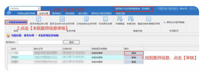 醫(yī)師個人提交信息修改申請后,聯(lián)系所在醫(yī)療機構(gòu)登錄《醫(yī)師電子化注冊信息系統(tǒng)(機構(gòu)版)》,在【業(yè)務(wù)辦理】一【本院醫(yī)師信息審核】中審核,審核通過后個人信息生效。