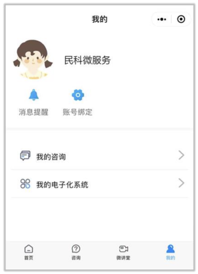 1、在民科微服務(wù)小程序【我的】中,點(diǎn)擊【我的電子化系統(tǒng)】