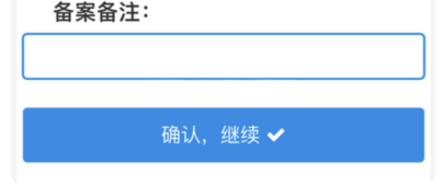 5、填寫“備案理由”、“備案?jìng)渥ⅰ眱?nèi)容后,點(diǎn)擊【確認(rèn),繼續(xù)√】按鈕,完成個(gè)人端業(yè)務(wù)提交