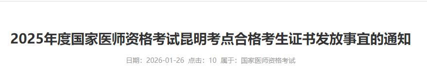 考生注意:云南昆明2025年醫(yī)師資格證書1月26日起現(xiàn)場(chǎng)發(fā)放!