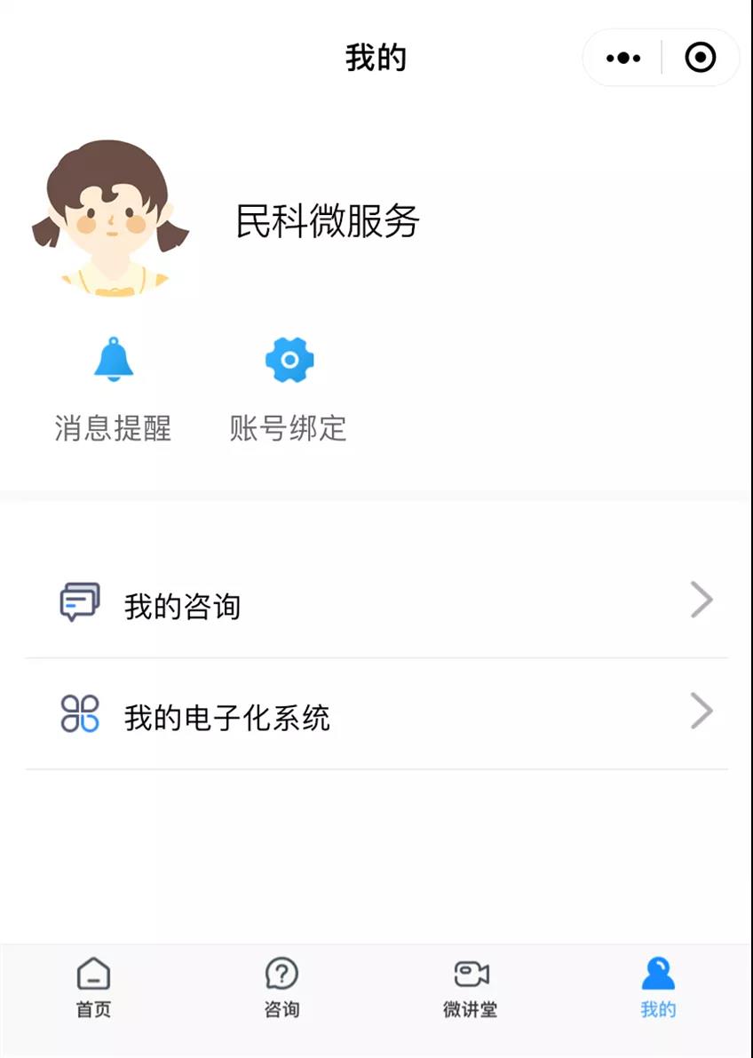 1、在民科微服務(wù)小程序【我的】中,點擊【我的電子化系統(tǒng)】