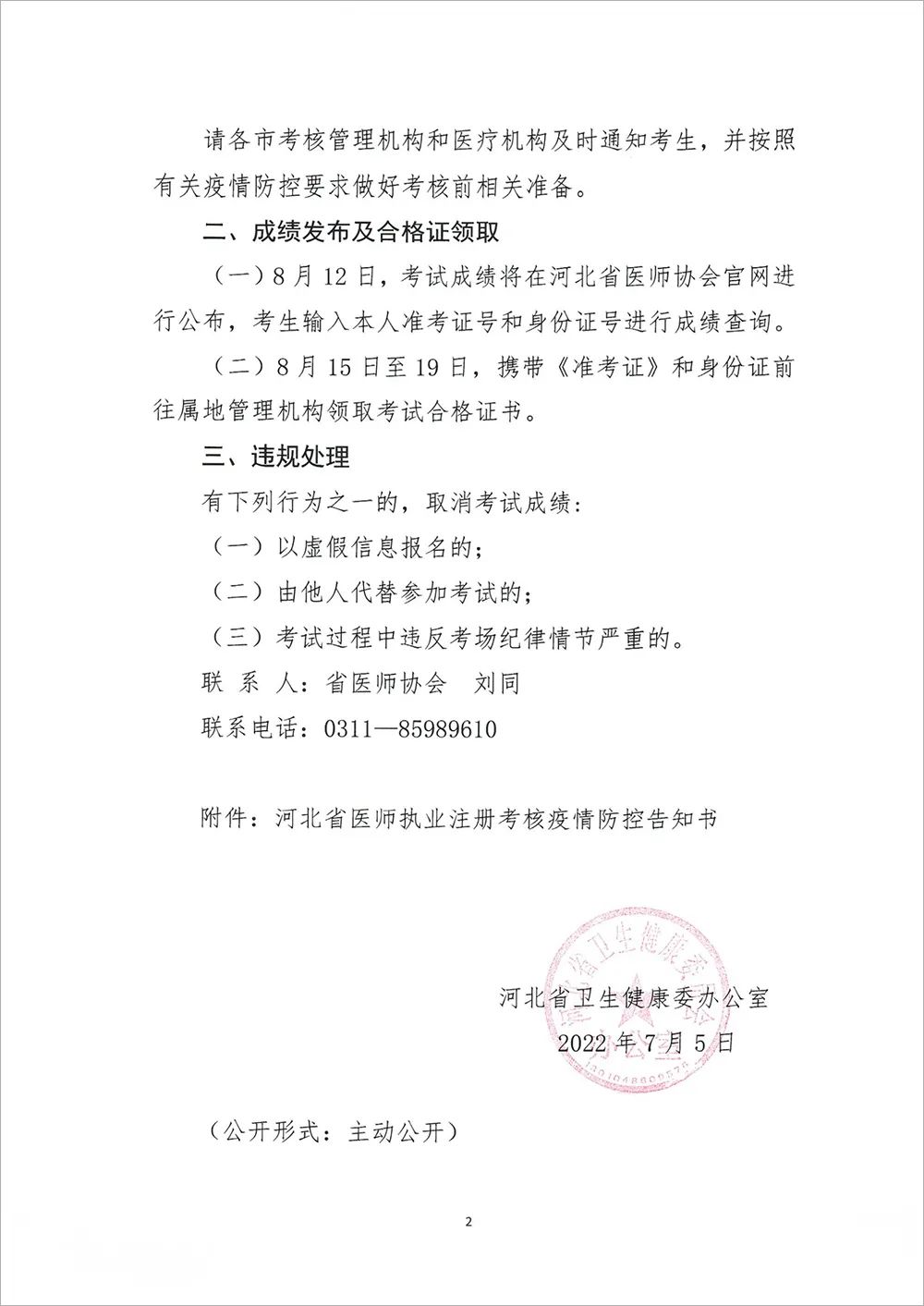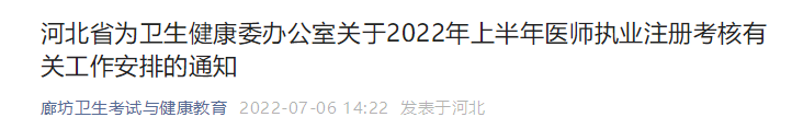 河北考區(qū)關(guān)于2022年上半年醫(yī)師執(zhí)業(yè)注冊考核有關(guān)工作安排的通知