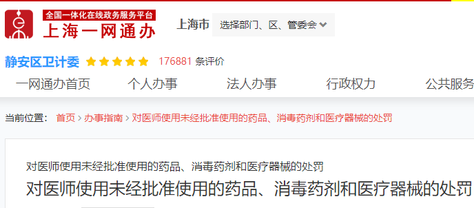 對醫(yī)師使用未經(jīng)批準使用的藥品、消毒藥劑和醫(yī)療器械的處罰有哪些?上海市靜安區(qū)衛(wèi)健委發(fā)布相關(guān)內(nèi)容供大家參考。
