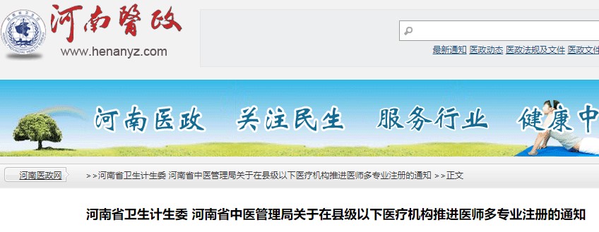 河南省衛(wèi)生計(jì)生委 河南省中醫(yī)管理局關(guān)于在縣級(jí)以下醫(yī)療機(jī)構(gòu)推進(jìn)醫(yī)師多專業(yè)注冊(cè)的通知