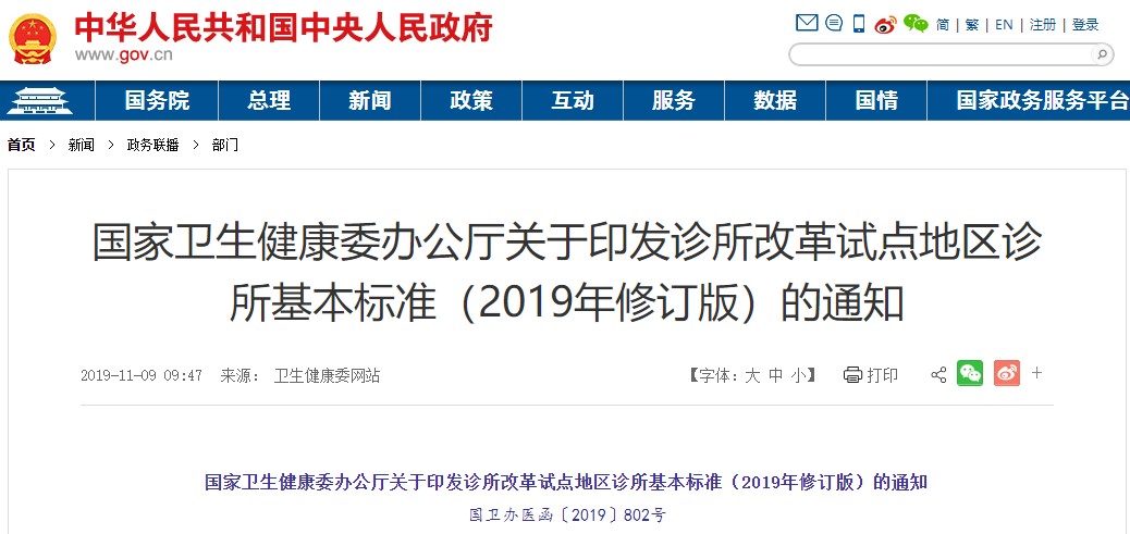 關(guān)于印發(fā)診所改革試點(diǎn)地區(qū)診所基本標(biāo)準(zhǔn)(2019年修訂版)