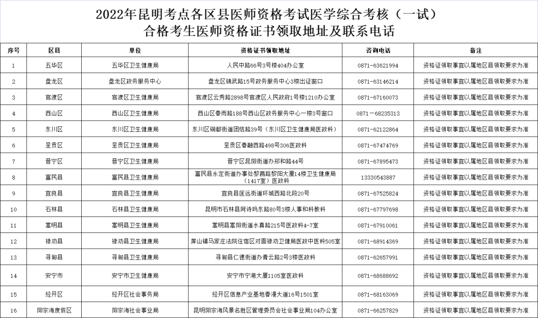 2022年度國家醫(yī)師資格考試昆明考點一試合格證書部分發(fā)放事宜的通知