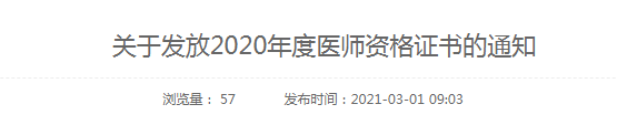 全國2020年醫(yī)師資格考試合格證書領取/發(fā)放通知匯總