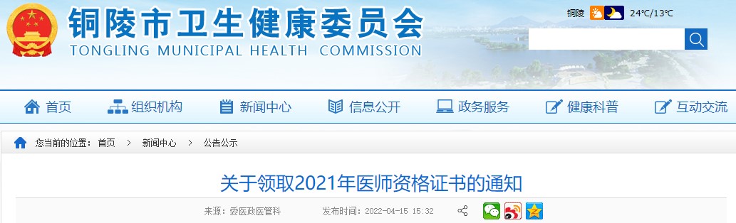 銅陵市關(guān)于領(lǐng)取2021年醫(yī)師資格證書的通知
