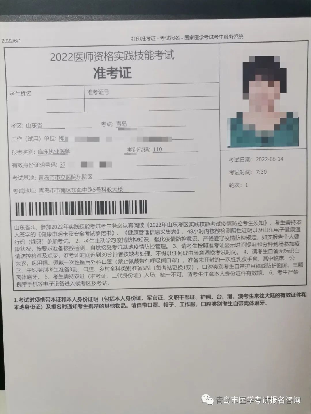 山東省青島市2022年醫(yī)師資格實(shí)踐技能考試準(zhǔn)考證可以打印啦!