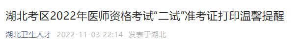 湖北考區(qū)2022年醫(yī)師資格考試“二試”準(zhǔn)考證打印時間及溫馨提醒