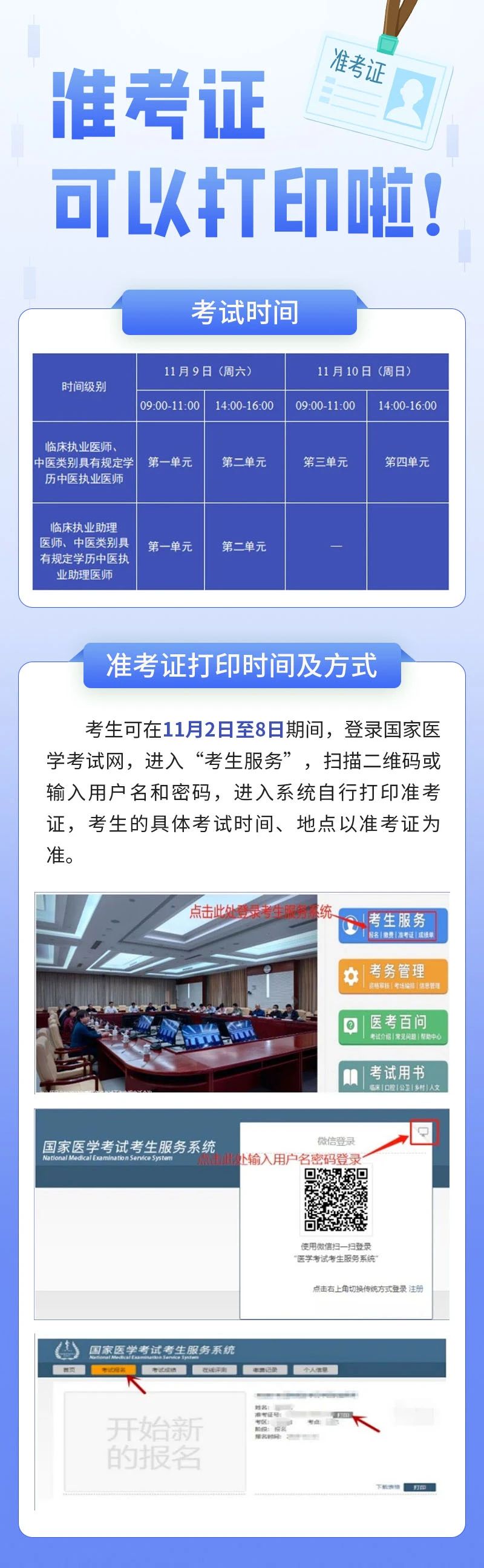 湖北考區(qū)2024年醫(yī)師資格醫(yī)學(xué)綜合考試“二試”準(zhǔn)考證11月2日開放打印,請各位考生按照如下打印流程進(jìn)行操作:
