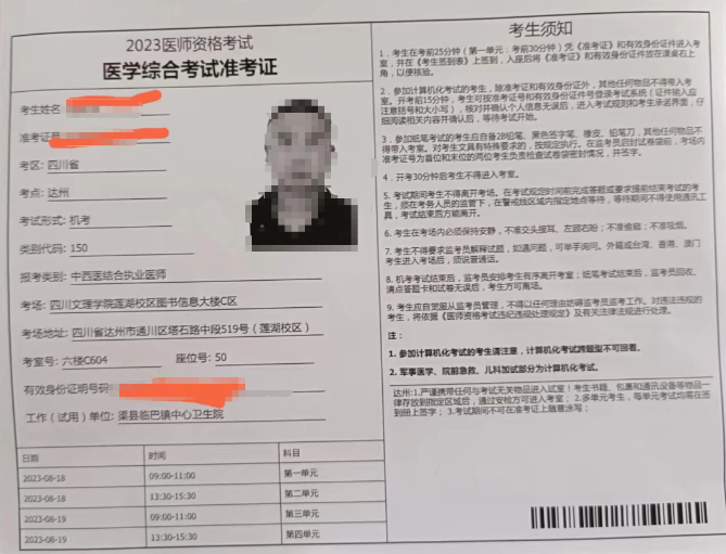 最新動(dòng)態(tài):四川考區(qū)2023醫(yī)師資格醫(yī)學(xué)綜合考試準(zhǔn)考證打印入口已開通