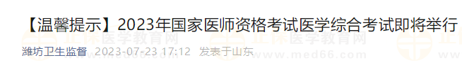 山東考區(qū)2023年國(guó)家醫(yī)師資格考試(青島考點(diǎn))醫(yī)學(xué)綜合考試準(zhǔn)考證打印溫馨提示