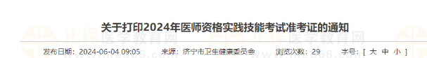 【官方】山東考區(qū)2024年醫(yī)師資格實踐技能考試準(zhǔn)考證打印6月5日開始