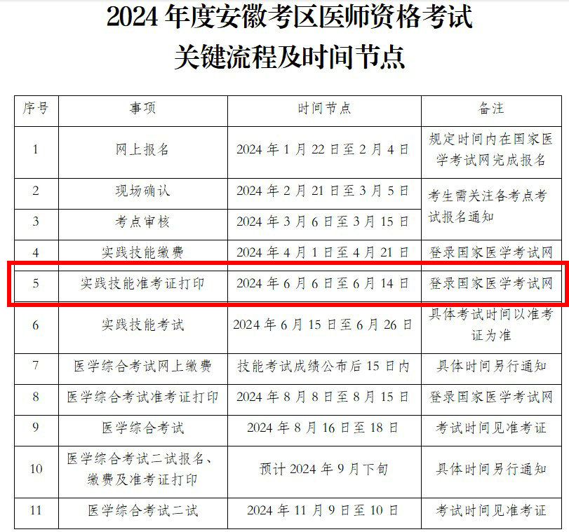 安徽省2024醫(yī)師資格實踐技能考試準(zhǔn)考證6月6日起開始打??!